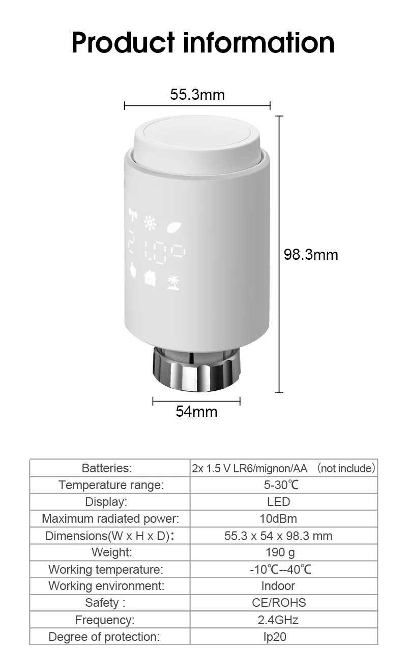 Термостат радиатора подходит для всех общих клапанов радиатора и легко монтируется-без необходимости слива воды или вмешательства в систему отопления. Дополнительная функция boost позволяет излучателю быстро нагреваться в течение короткого периода времени, открывая клапан в течение 5 минут. Из-за излучаемого тепла температура в помещении будет приятной.