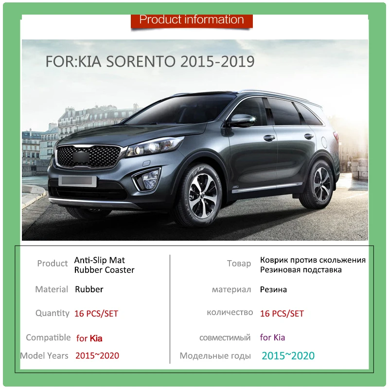 Коврик с прорезями для двери для KIA Sorento UM 2015 ~ 2020 2016, держатель для чашки, автомобильная наклейка для хранения, резиновая подушка, подставка, Пыленепроницаемая накладка, авто