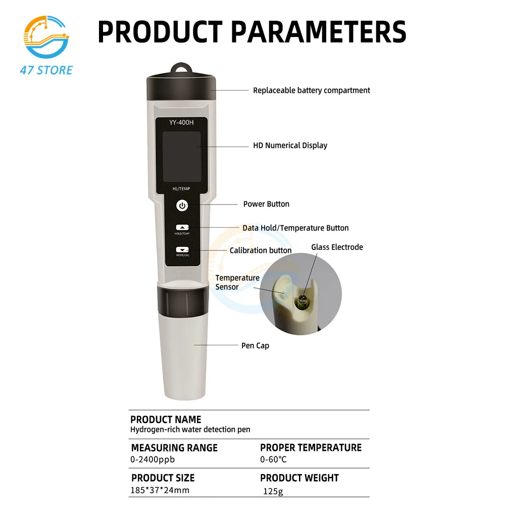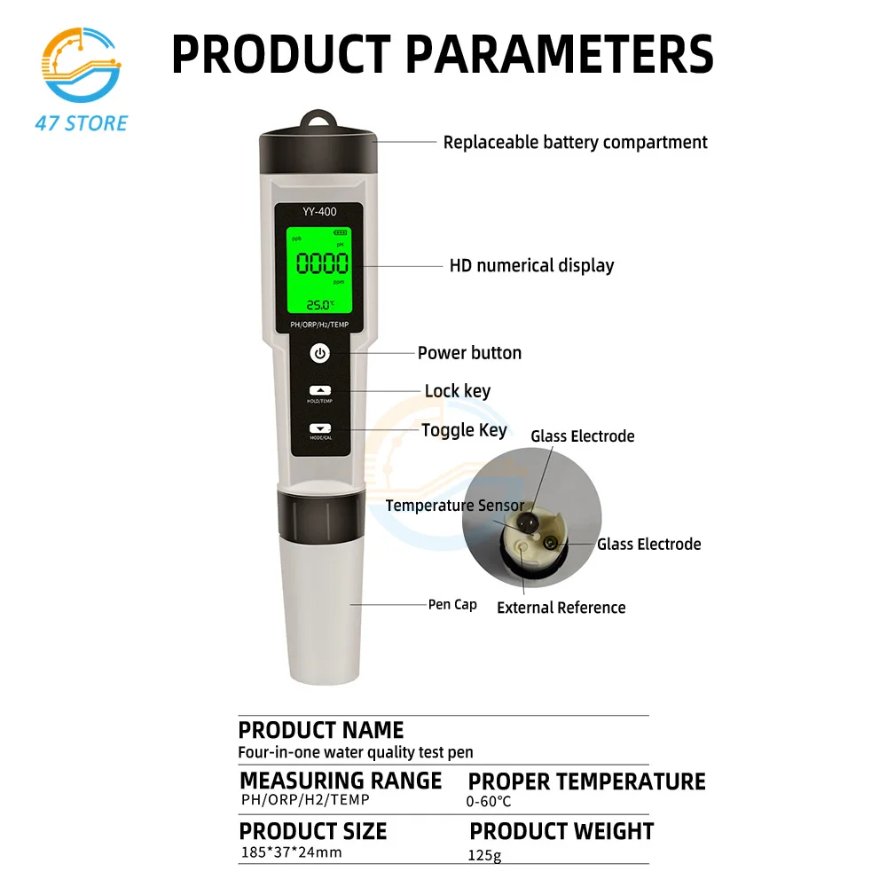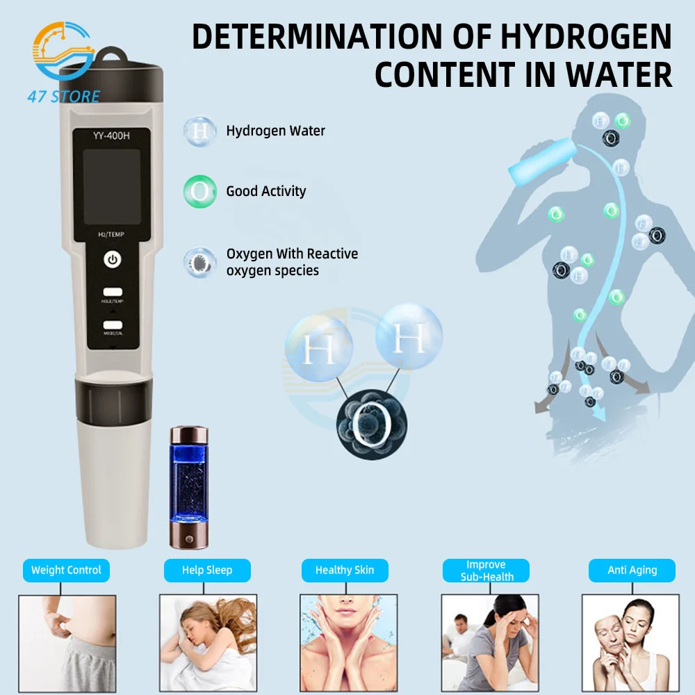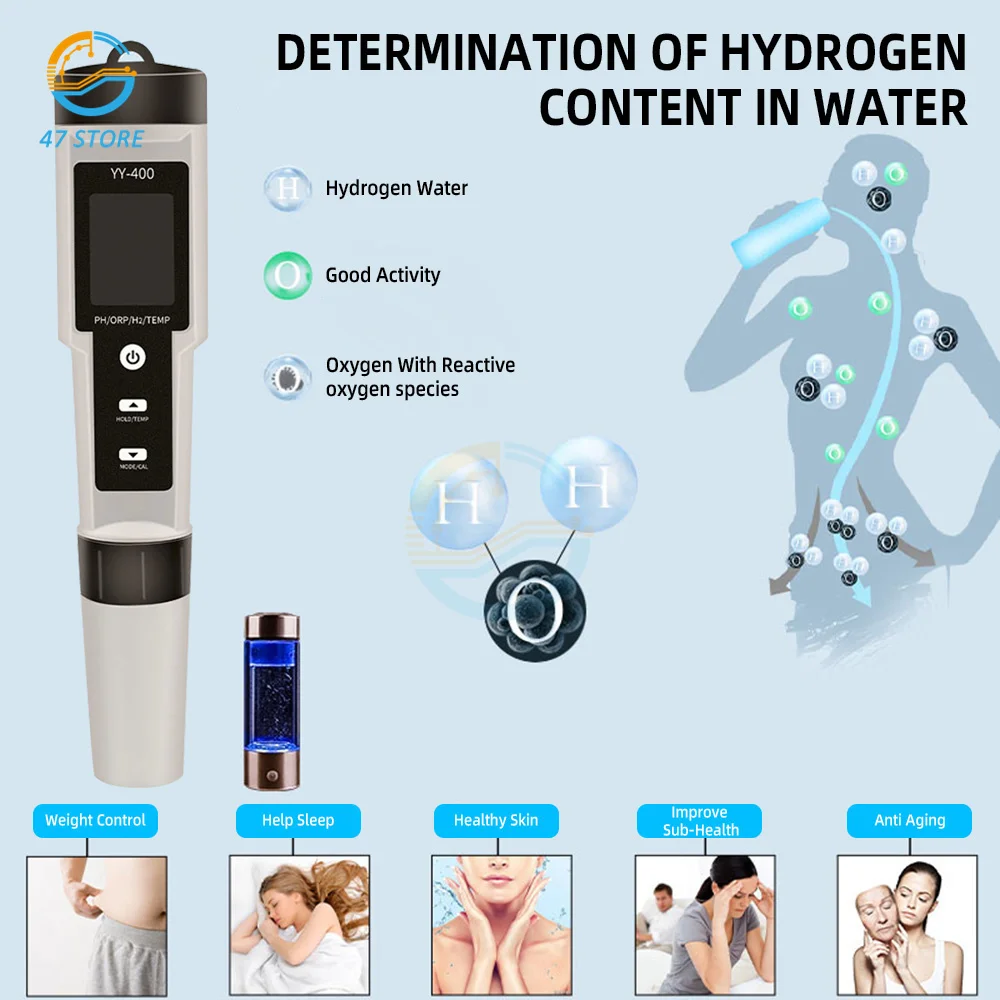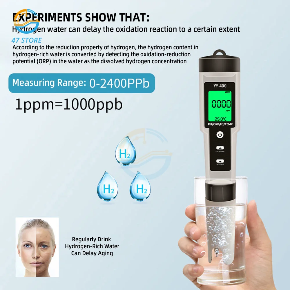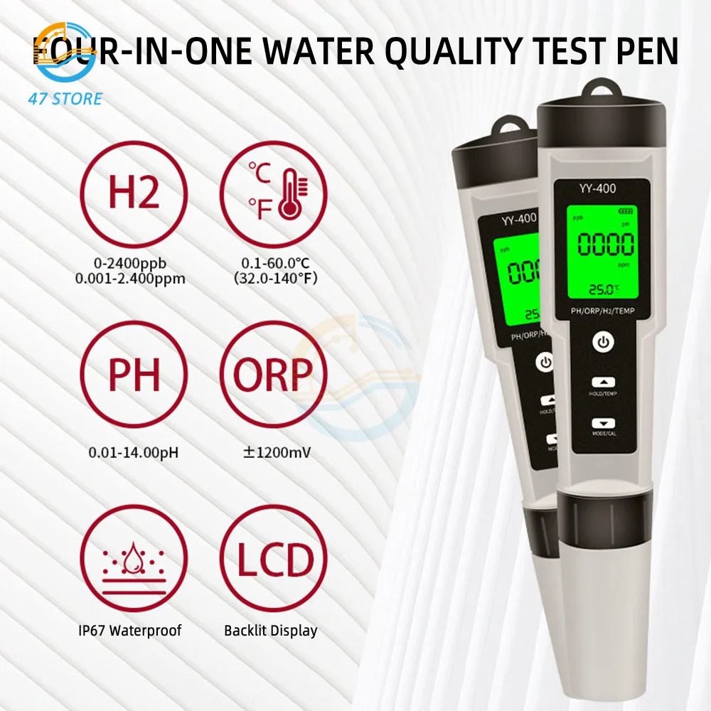YY-400 для концентрации ионов водорода, ручка для проверки качества воды PH/ORP/H2 и TEMP 4 в 1, цифровой измеритель питьевой воды