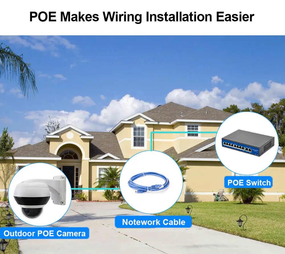 Настоящая игра и безопасность подключений! Он оснащен POE (Power over Ethernet), с одним кабелем, соединяющим каждую ip-камеру с NVR как для источника питания, так и для видео и одиночной передачи. Простая Проводка-процесс проводки не может быть проще для любителей DIY и начинающих