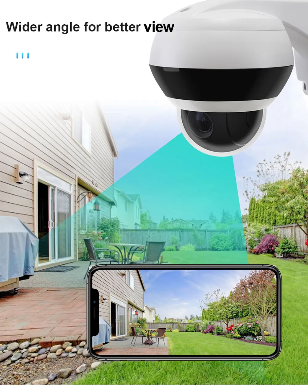 Объектив этой камеры PTZ может поворачиваться, вы можете видеть более широкую область, удаленно управляя камерой на свой мобильный телефон, так что мониторинг не оставляет слепых пятен.