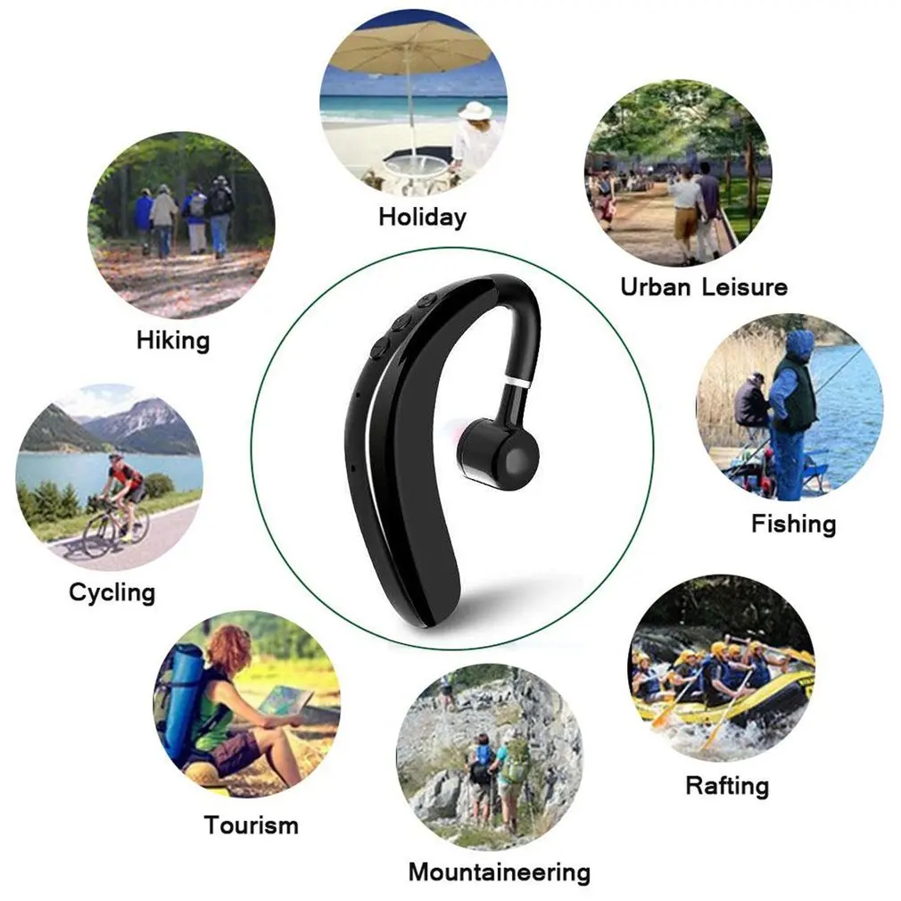 Легкая беспроводная гарнитура не будет нагружать уши, поэтому она обеспечивает длительный комфорт, подходит для водителей или деловых людей; 180 градусов регулируемые затычки для ушей очень подходят для левого или правого уха.