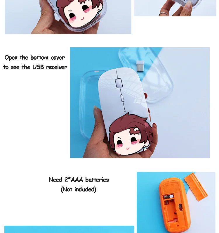 Милая аниме демон Slayer беспроводная мышь оптическая компьютерная геймерская мышь Мини Kawaii игровая мышь с USB для ноутбука ПК настольный подарок