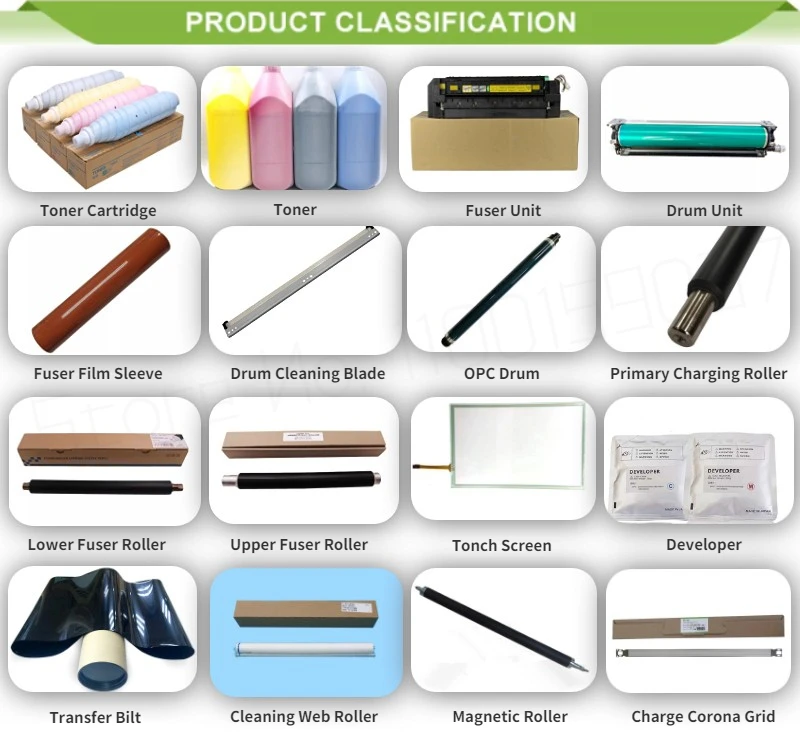 Запасные части для копировального аппарата: фотобарабан, Верхний роликовый предохранитель, Нижний роликовый предохранитель, чистящее лезвие, разработчик, шестерня, чип и т. д.