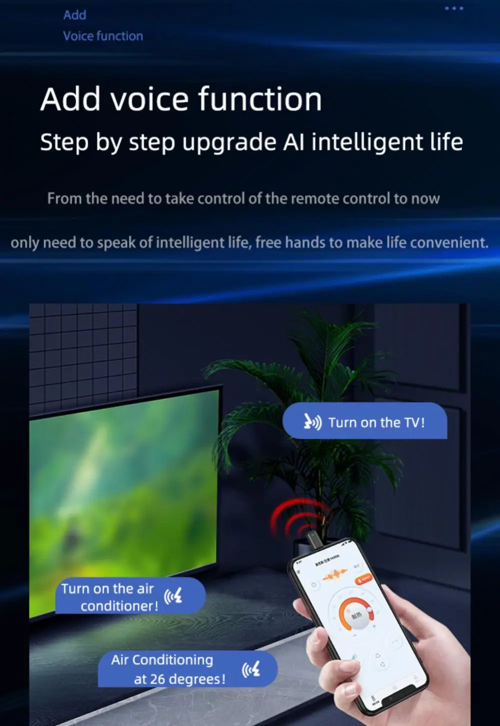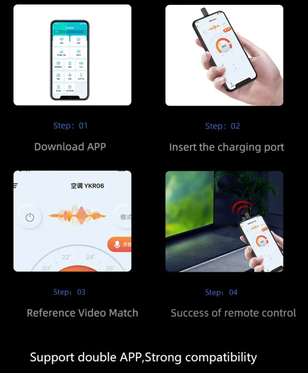 1. 【Управление мобильным приложением 】мобильный телефон нужно только загрузить приложение, подключить капсулу универсальный пульт дистанционного управления, и мобильный телефон становится умным пультом дистанционного управления за считанные секунды, И легко удаленно управлять ТВ-приставка кондиционера.