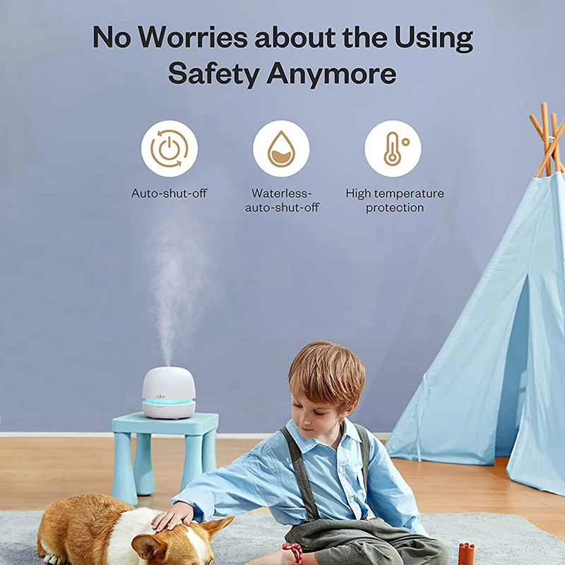 Безопасный и здоровый: благодаря безвредной технологии BPA, вы можете поместить диффузор в комнату ребенка. Диффузор также может быть установлен в 7 различных мягких и успокаивающих цветах, а затем создать теплую и интимную среду.