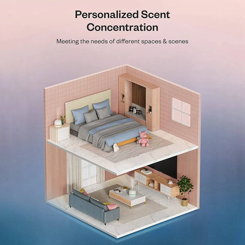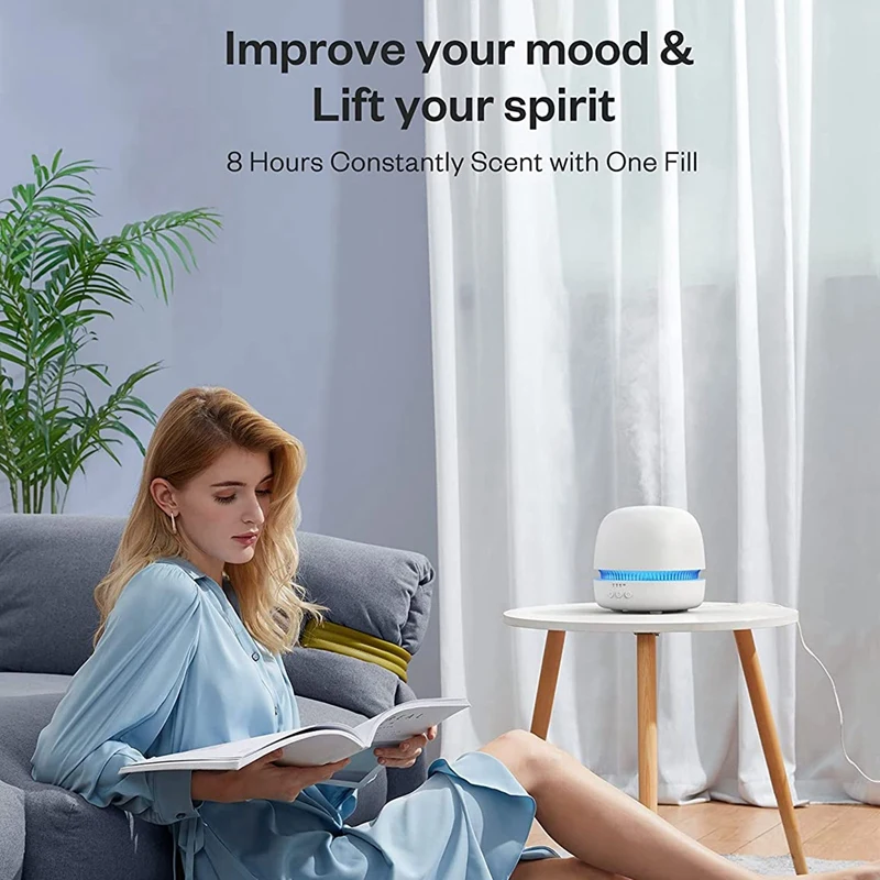 Тихий и безопасный: с ультра-тихой технологией дизайна, диффузор работает ниже 30 дБ для работы, что не влияет на ваш сон или работу. С диффузором вы можете наслаждаться зданием, свежим и ароматным воздухом. Функция защиты от низкой воды автоматически отключает диффузор, когда низкий уровень воды определяется для защиты вас и устройства.