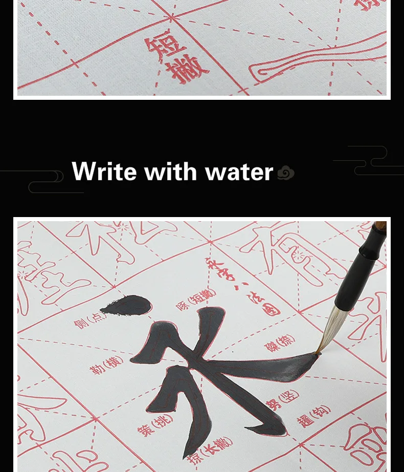 Использование:С чистой щеткой окуните немного воды, напишите на ткани, черные слова, такие как настоящий метод чернил,