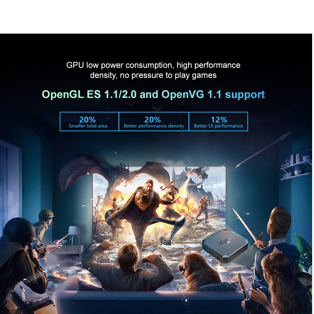 Смарт-ТВ-бокс Поддерживает аппаратное декодирование H.265, которое может сэкономить 50% ресурсов полосы пропускания, чтобы работать быстрее. GPU низкое энергопотребление, высокая производительность, отсутствие давления, чтобы играть в игры