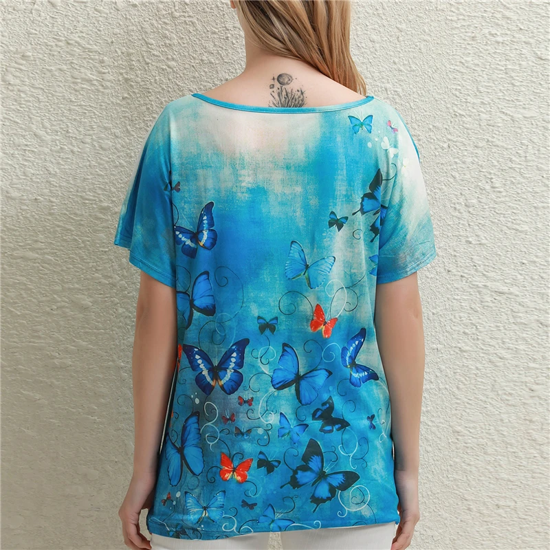 Лето 2022, женская футболка с принтом бабочки, повседневный Топ, женская одежда, уличная Эстетическая винтажная рубашка с коротким рукавом, графическая футболка