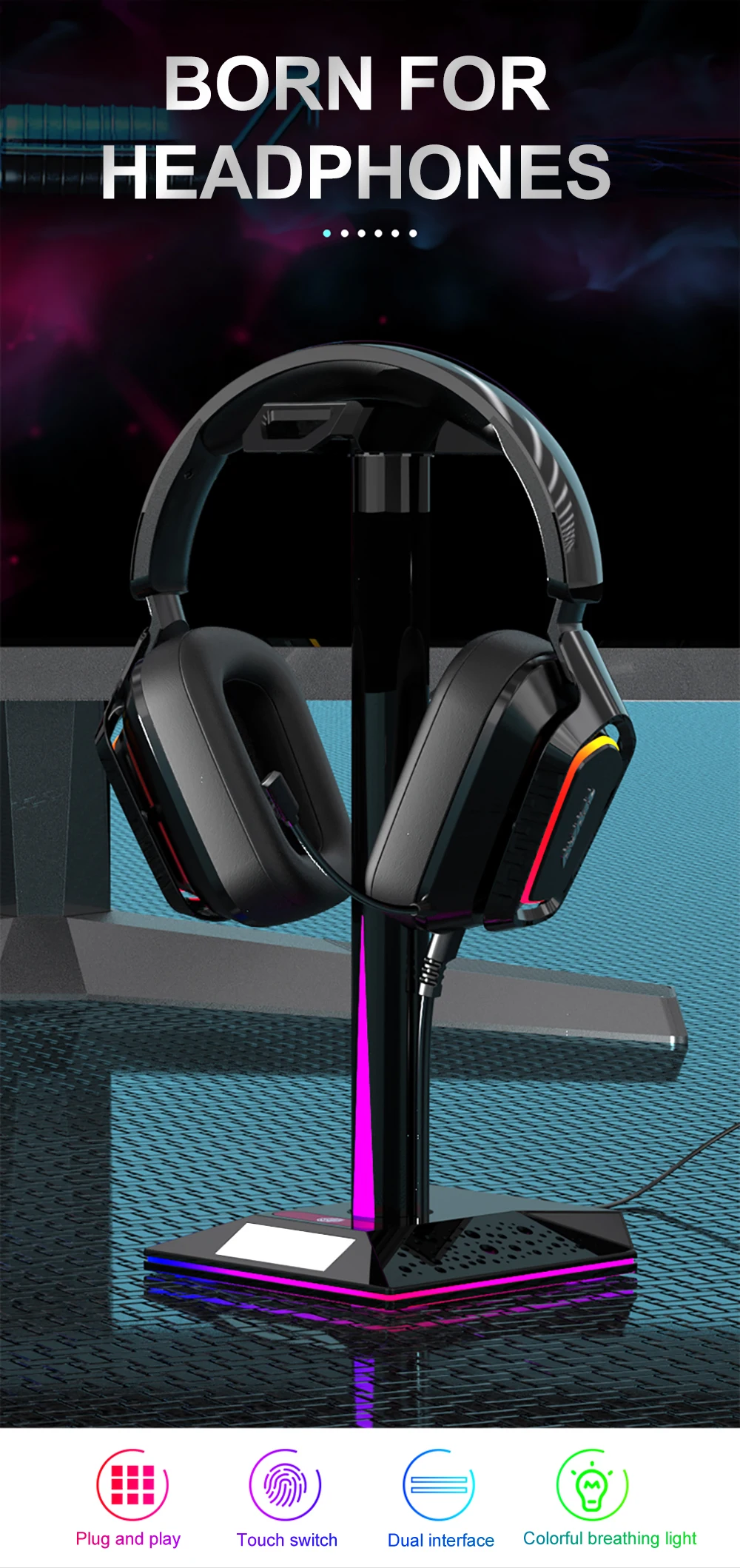 Светодиодный Подставка для наушников с usb-хаб