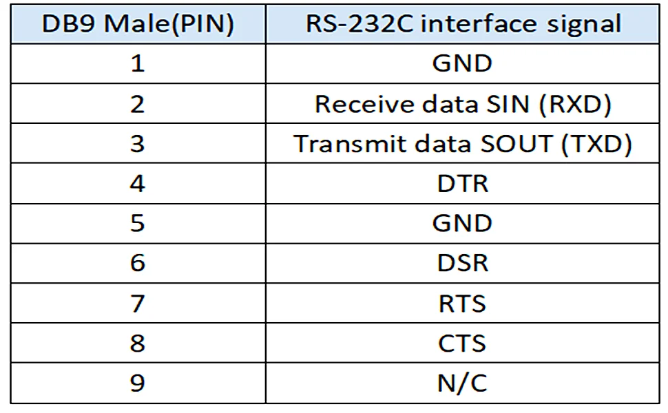 ●Сигнал: RS-232: DCD, RXD, TXD, DTR, GND, DSR, RTS, CTS