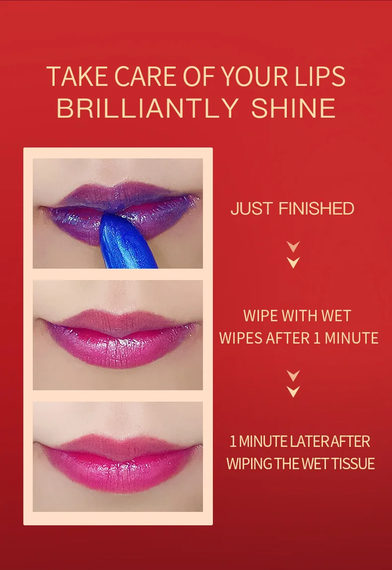 Цвет помады меняется с температурой и pH губ.