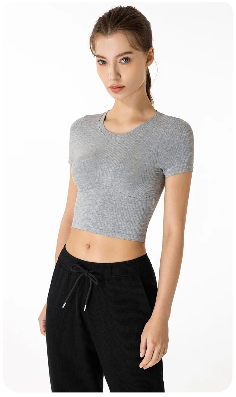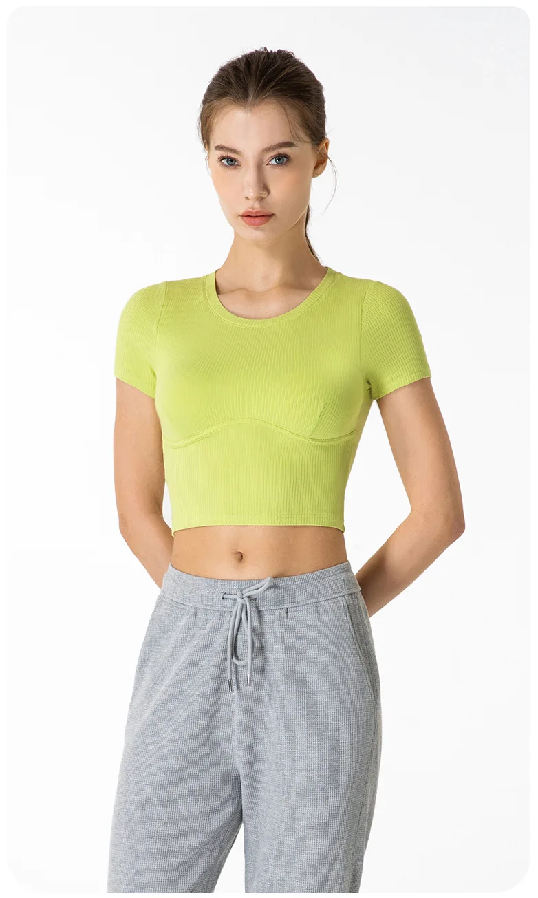 ABS LOLI ребристый бесшовный короткий рукав укороченный топ для йоги облегающие фитнес-футболки для бега спортивные топы для тренировок для женщин