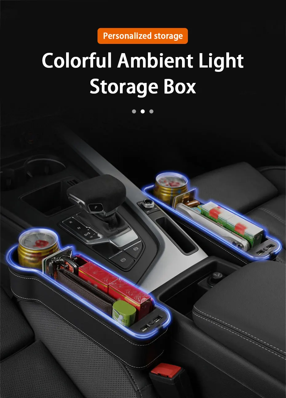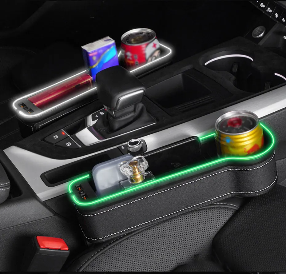 Органайзер для автомобильного сиденья многофункциональная коробка для хранения зазоров сидений с USB зарядным устройством для автомобиля, светодиодный светильник с атмосферой дыхания, подстаканник