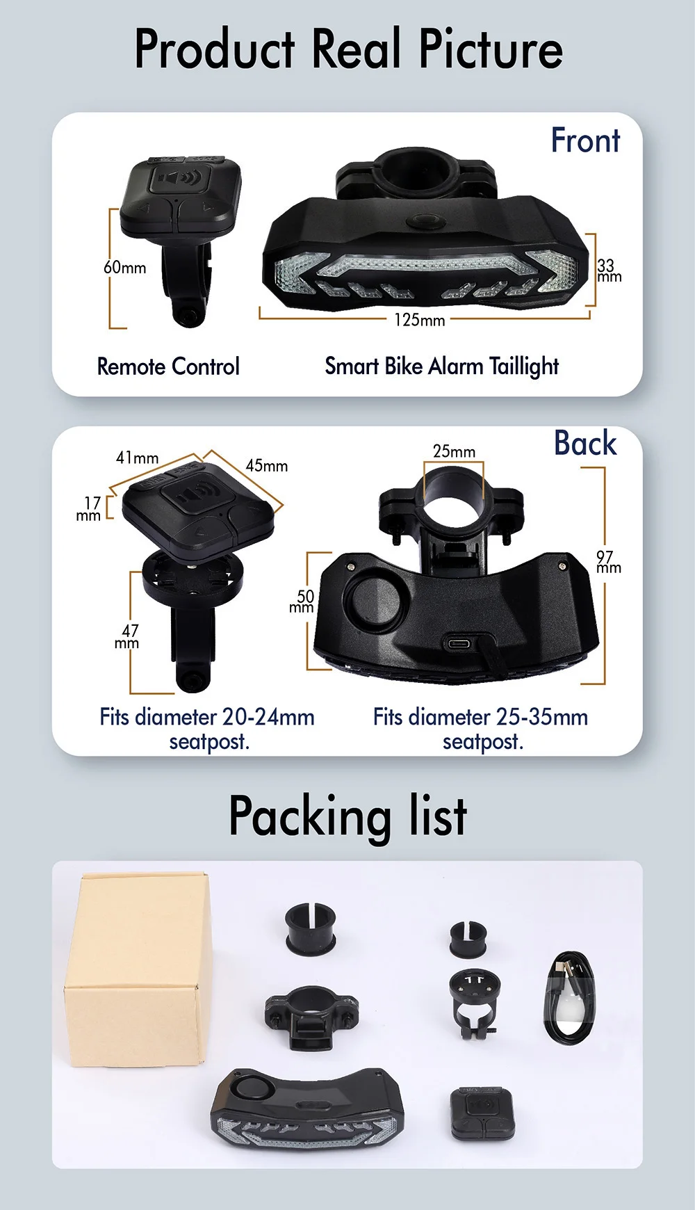 8. Велосипедный задний фонарь и Противоугонная сигнализация в одном устройстве, удобный и компактный в использовании.