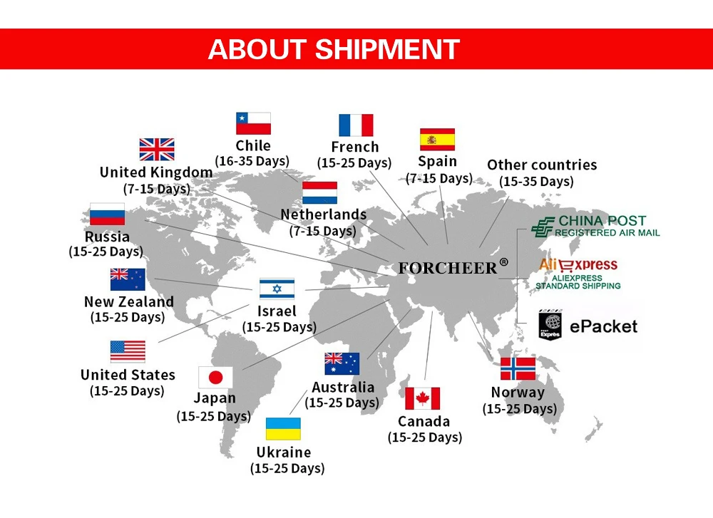 После того, как вы оплатите заказ, мы отправим вам заказ в течение 8-48 часов (за исключением китайских новогодних праздников). Рекомендация продавца логистики: Почта Китая зарегистрированная посылка, AliExpress беззаботный стандарт логистики, AliExpress, сохранить доставку, UPS или другую лучшую логистику. Потому что они более быстрые и отслеживаемые. Веб-сайт отслеживания://global.cainiao.com/.