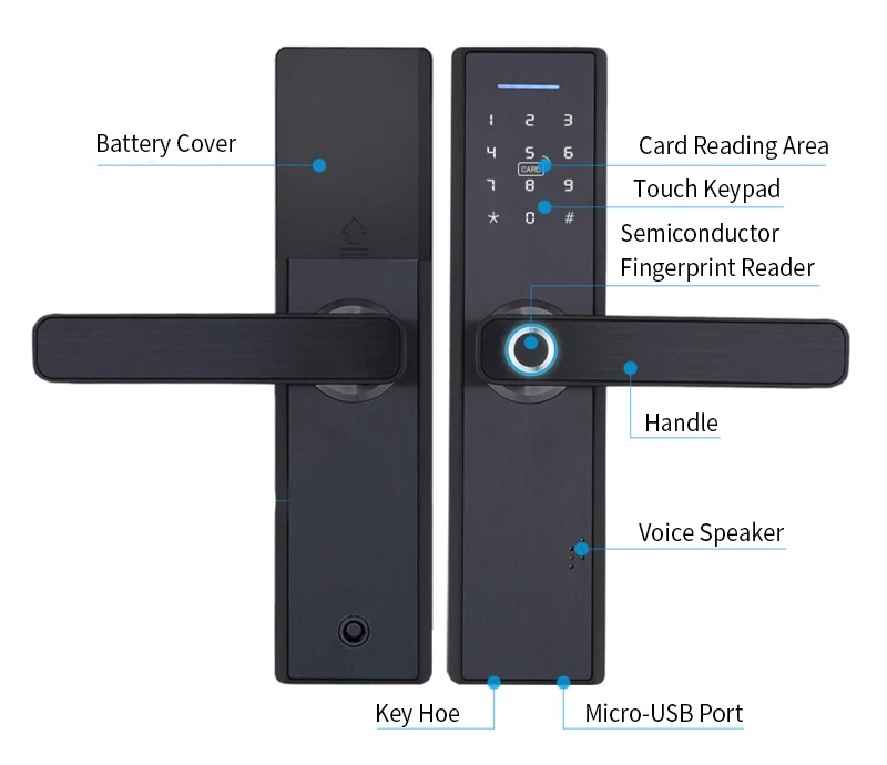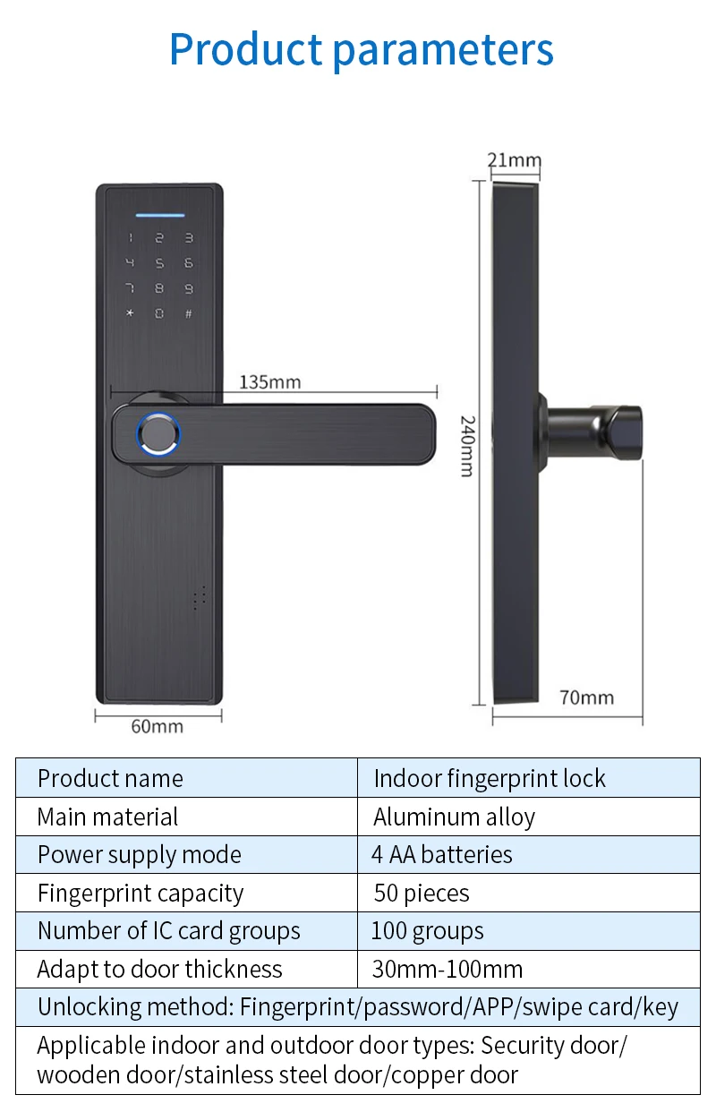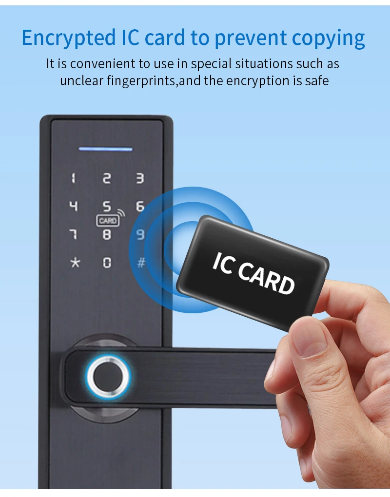 1. 5 способов разблокировки: отпечаток пальца, пароль, IC карта, механический ключ, приложение