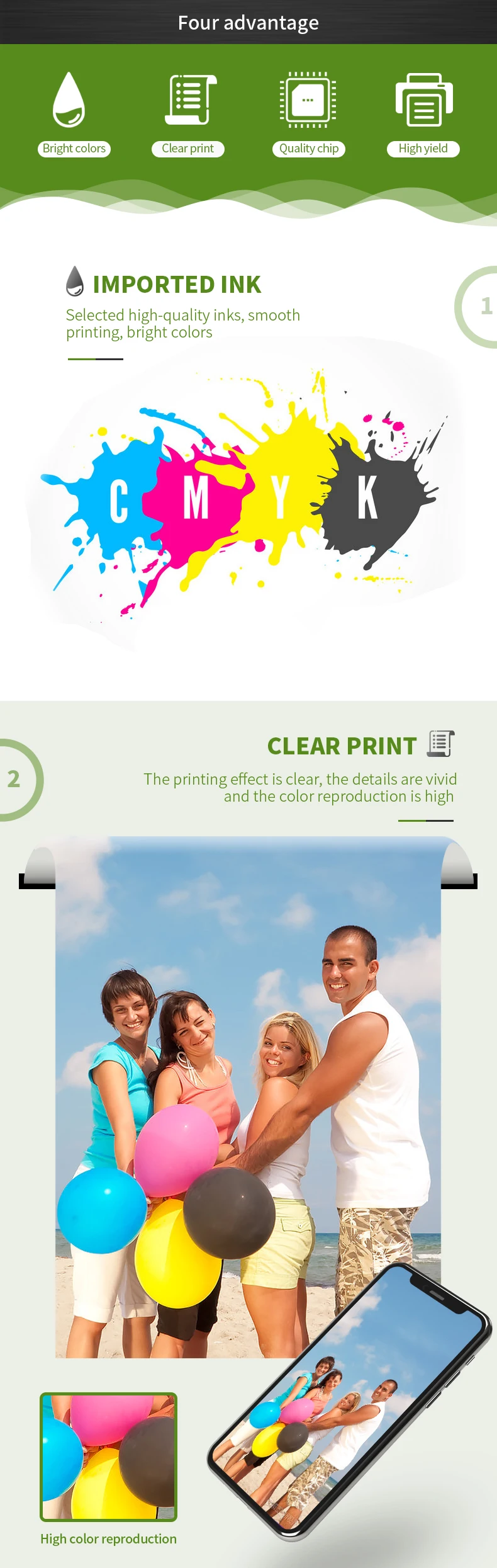Посылка ③:1 комплект черных и цветных чернильных картриджей для HP 664XL, полный с чернилами и чипами