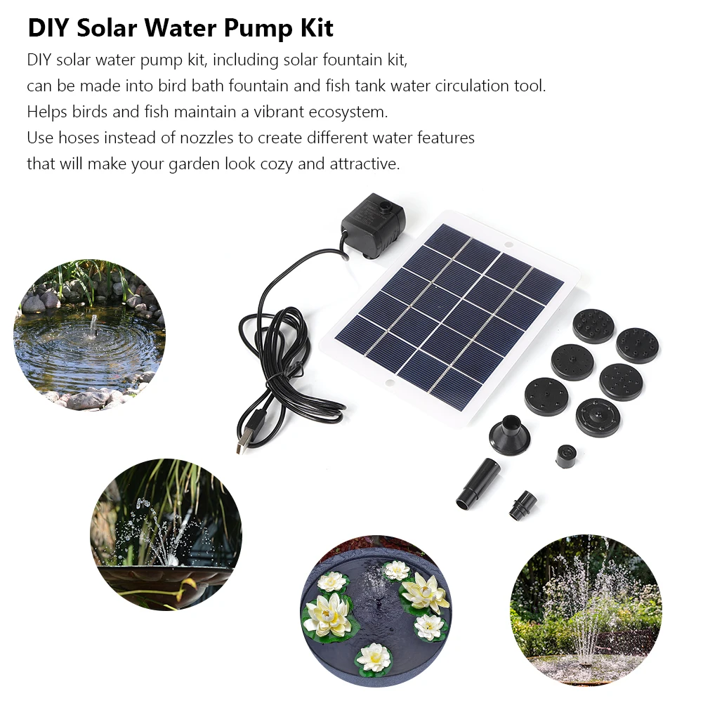 5 Вт 5 в солнечный фонтанный насос с 9 насадками, солнечные водяные насосы, комплект, пруд, распылитель воды для птиц, ванны, сада, бассейна