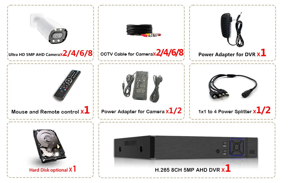 2.HD 5MP AHD камера и 6 в 1 гибридный цифровой видеорегистратор;