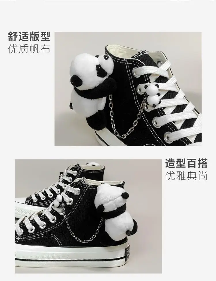 ① Дизайн с пандой и цепочкой в цветовых вариантах без меха внутри кроссовок.