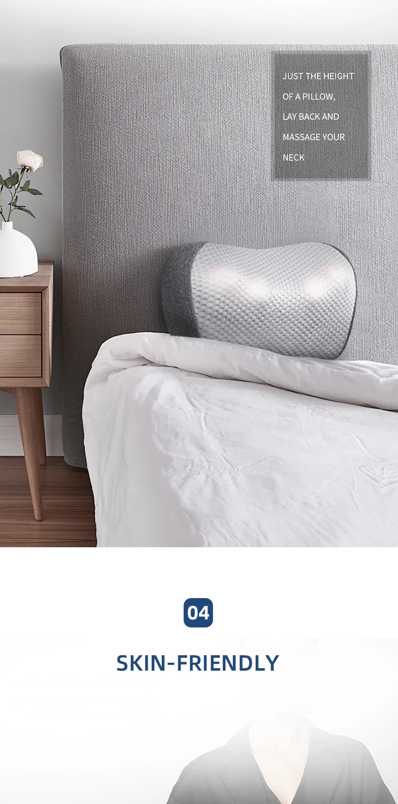 IBack2 тщательно разработан и изготовлен, так что он может поместиться и поддерживать шею эргономично. Это так же приятно, как спать на хорошая подушка при укладке с iBack2. Поверх этого, точный массаж шеи добавляет вашей радости, когда вам просто нужен отдых.