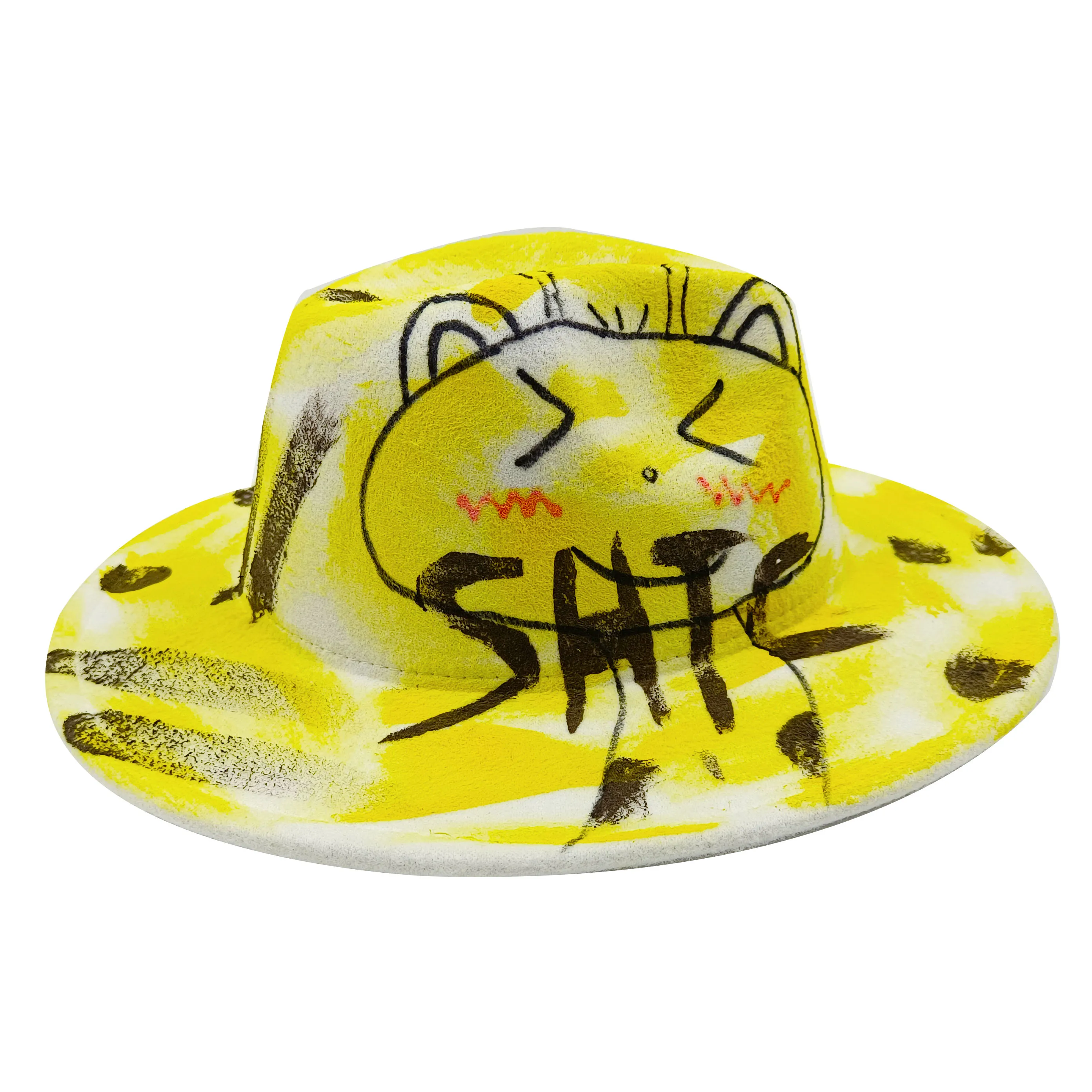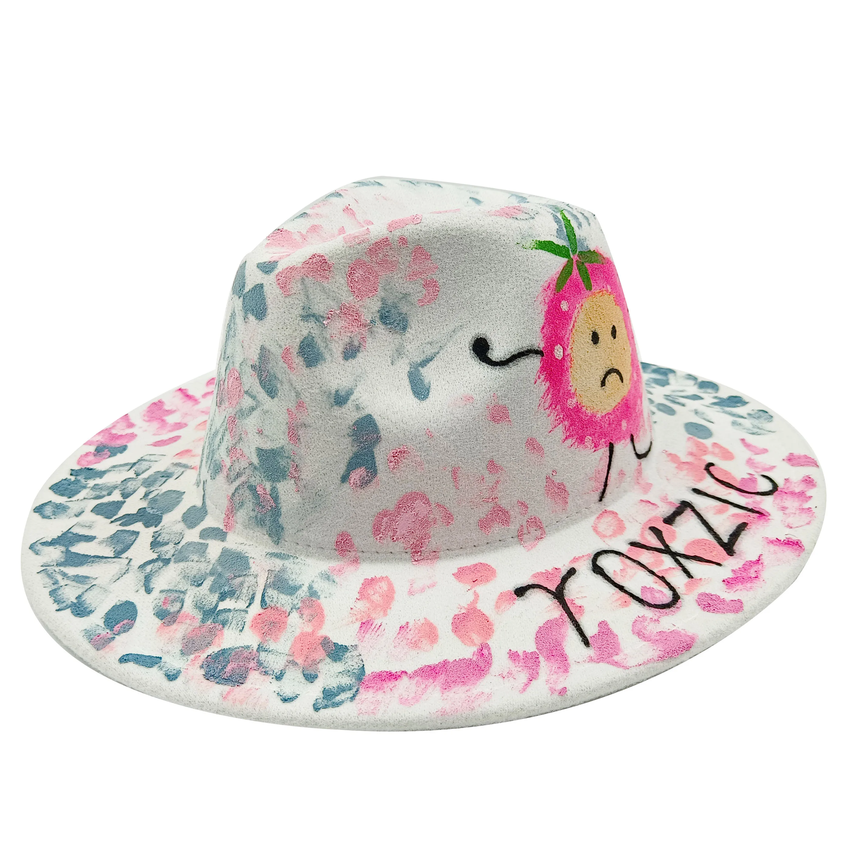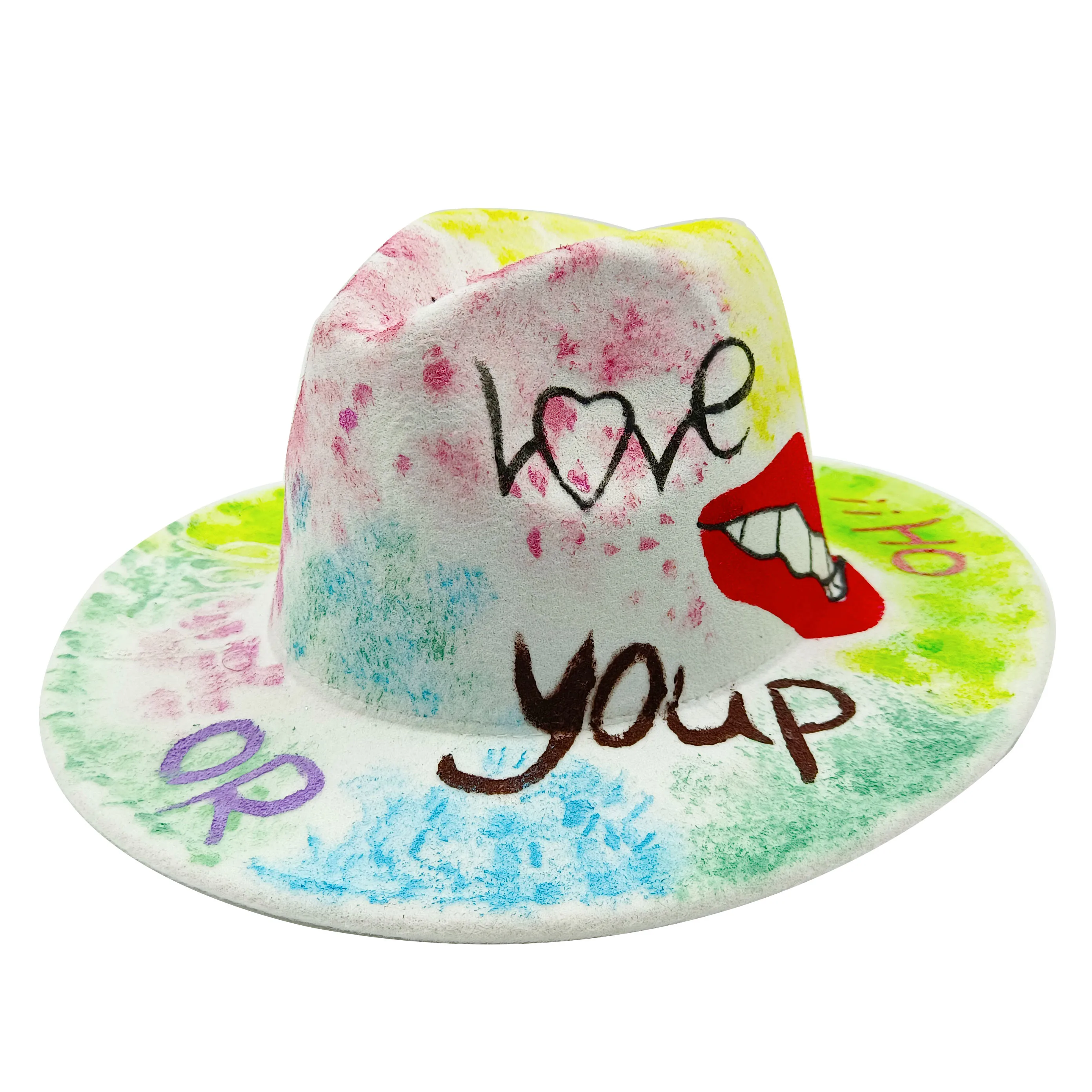 Wholesale price women's FEDORA tie dyed hat 3D painted graffiti