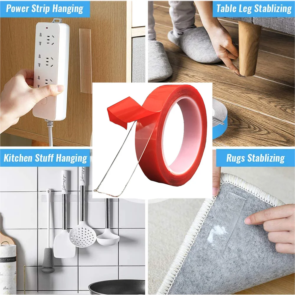 [Многофункциональность]: идеально подходит для любого случая, например, для наклеивания фотографий и плакатов, фиксации ковров, наклеивания предметов на стену, прикрепления телефона или планшета к любым поверхностям. Эта лента надежно защитит ваши ковры, ковры и декор кухонной стены.