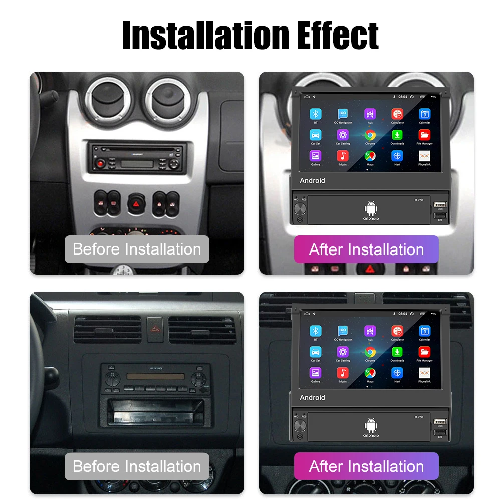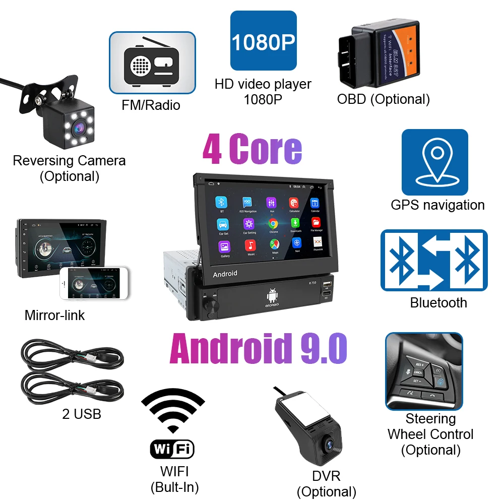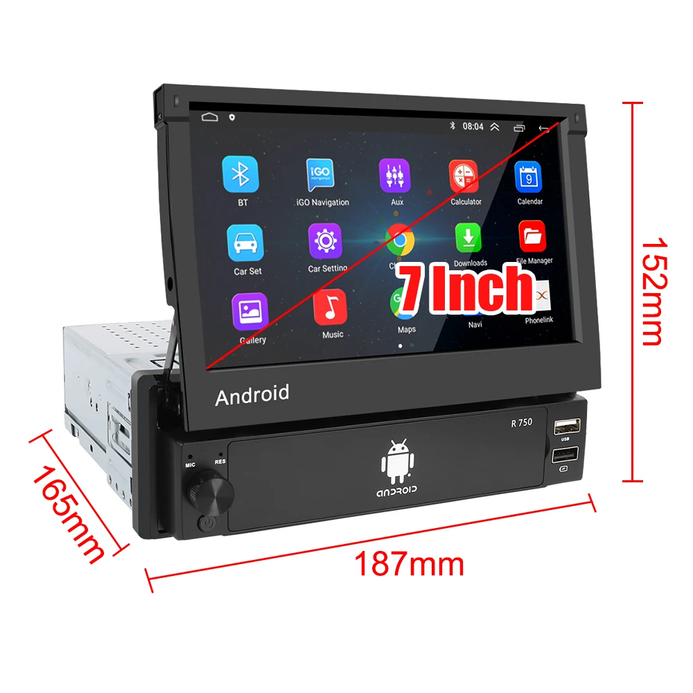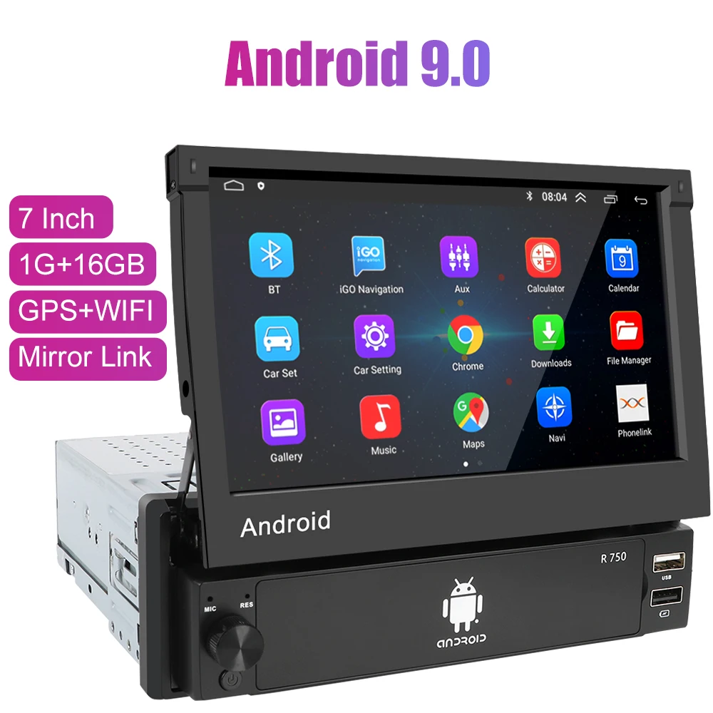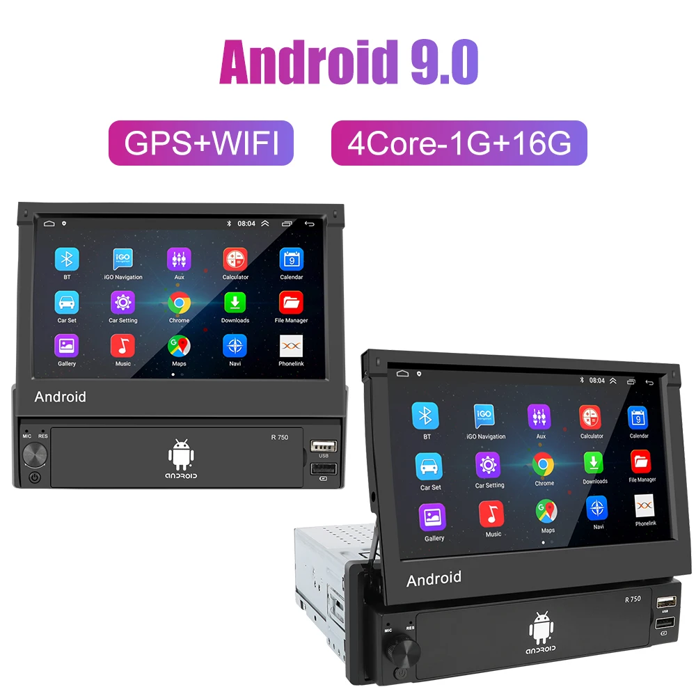 Android 9,0 OS, 7 дюймов 1024*600 выдвижной сенсорный экран