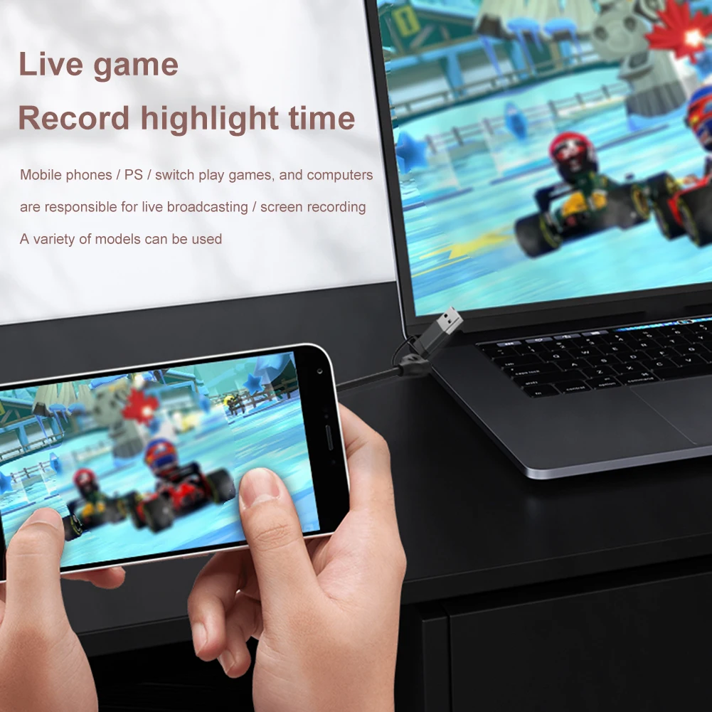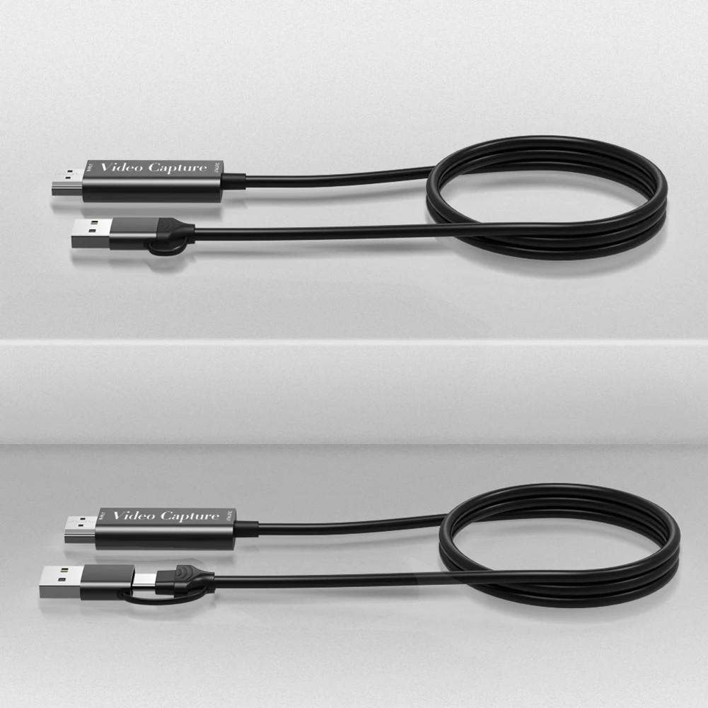 HD карта видеозахвата USB A/C двойной интерфейс HDMI-совместимость с USB картой сбора с кабелем 2 м для игр/потокового воспроизведения/конференции