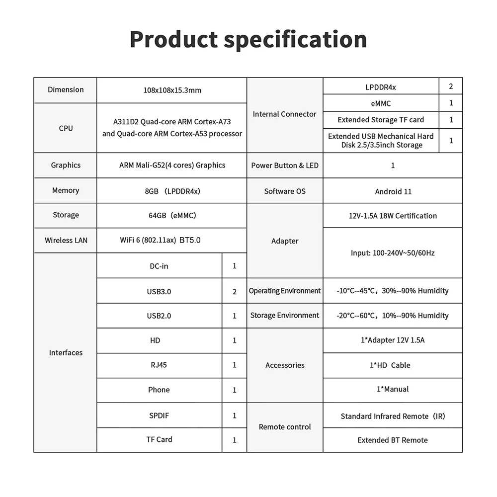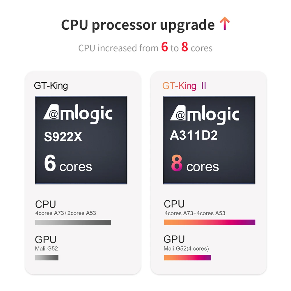 -CPU: четырехъядерный процессор Amlogic A311D2 Cortex-A73 ARM и четырехъядерный Cortex-A53 ARM