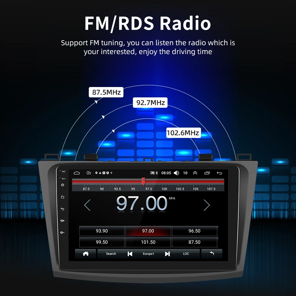 9.【Эквалайзер звуковые эффекты выбор сцены andf FM радио】:Вы можете слушать трафик в режиме реального времени, новости, прогноз погоды и т. д., так что утомительное Вождение не является монотонным.