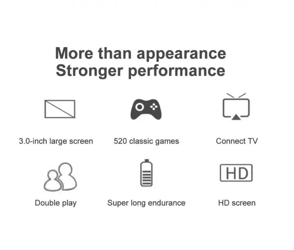 Игровая консоль имеет уникальные 800 FC игры, она может обеспечить множество различных игровых впечатлений. Игра не повторяется, пусть ваше полное удовольствие от детства. Поддерживает 2 игрока для воспроизведения по телевизору. Классический внешний вид в стиле ретро FC популярен в качестве подарка для детей.