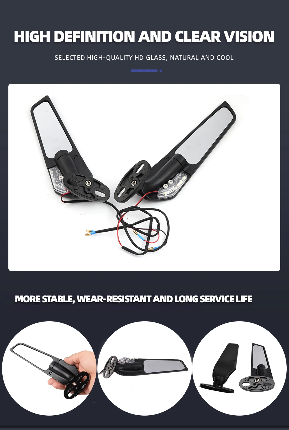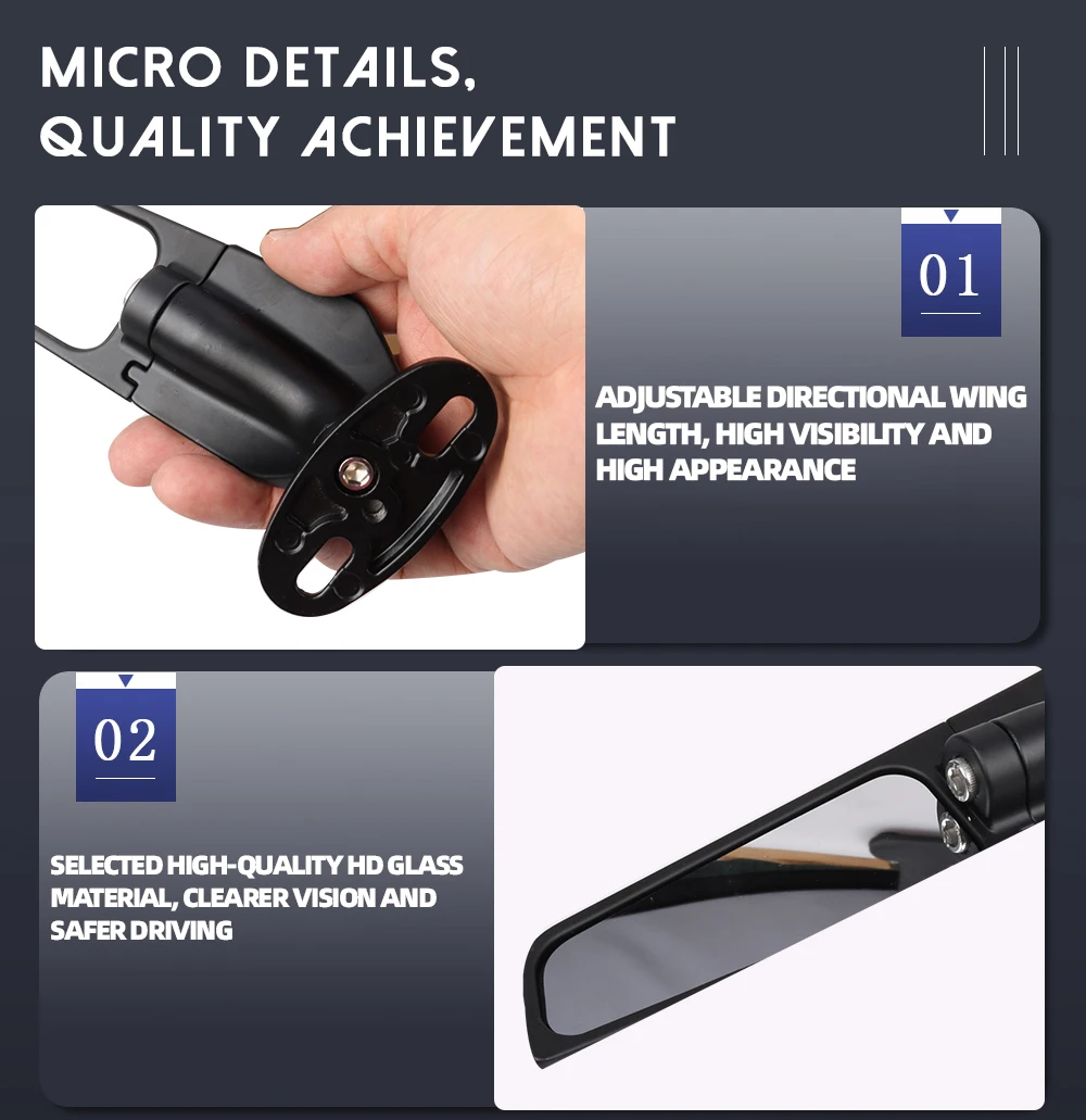 3. Гладкий и стильный дизайн, зеркальный шатун может регулировать направление, мгновенно модернизировать ваш мотоцикл в новый пользовательский привлекательный вид, лучшая замена для вашего изношенного или сломанного мотоцикла конца.