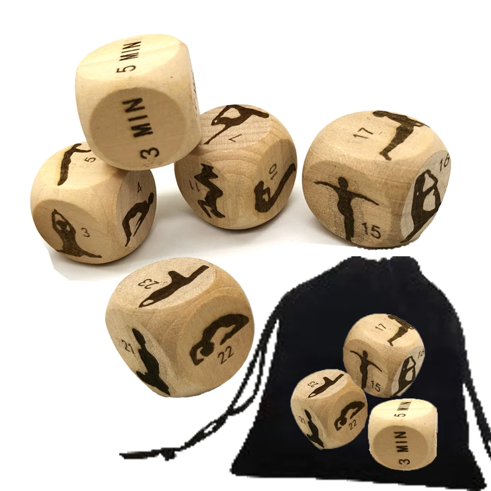 【 Романтический Йога подарок 】Best Йога подарок для медитации и йоги для влюбленных; 4 предмета в комплекте (1,0 ”) дерева Йога кости + 1 шт. времени кости + бархатным мешочком; разработан, чтобы быть идеальным подарком для женщин йоги и медитации, портативные фитнес-кости для йоги всех возрастов и способностей