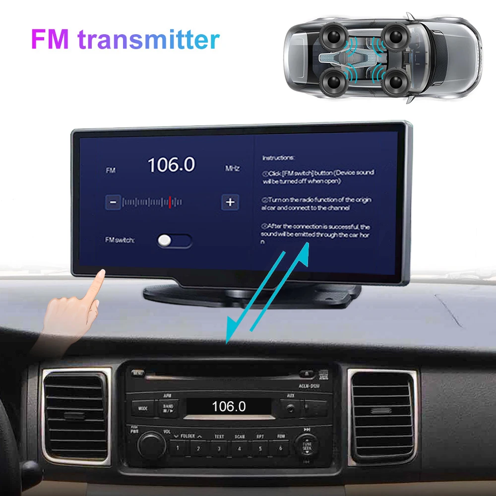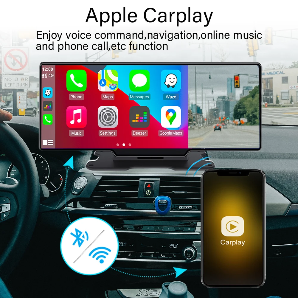 ▶Основные характеристики: беспроводной Carplay,Android Auto, fm-передатчик, функция Wi-Fi, g-сенсор, циклическая запись, помощь при парковке, обнаружение движения, отображение времени и данных
