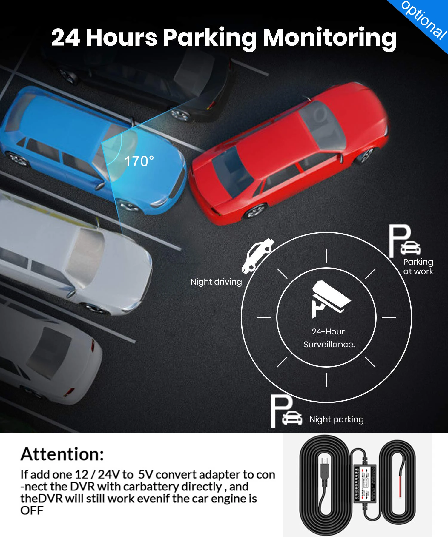 ▶1 x понижающая линия для 24H мониторинга парковки (опционально)