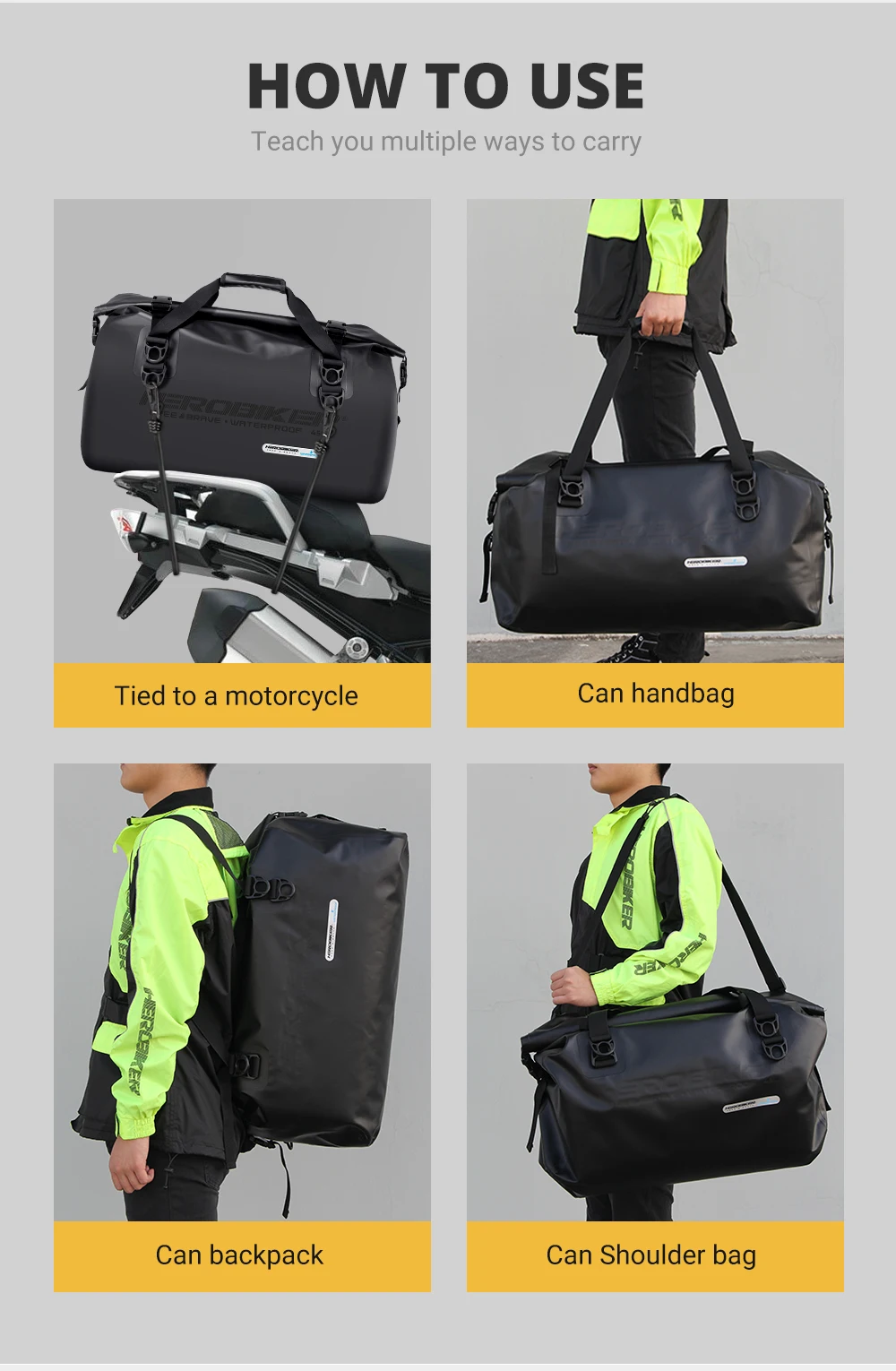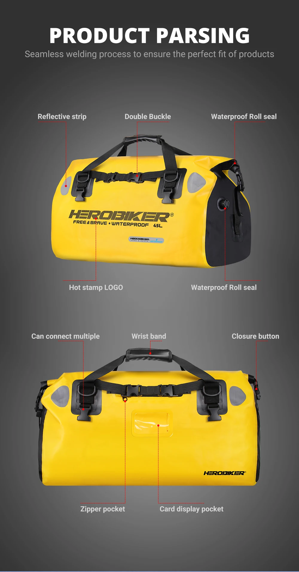 Adopting waterproof material, waterproof zippers and pockets, blocking rainwater from entering in the bag