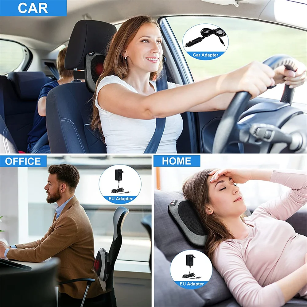【Подходит для использования в офисе и автомобиле 】 электрическая массажная подушка оснащена адаптером переменного тока и автомобильным адаптером постоянного тока. Задняя часть массажной подушки также имеет эластичные ленты, которые могут быть прикреплены к стульям, игровым стульям и офисным стульям. Он очень подходит для дома, офиса и автомобиля. Эта массажная подушка Подходит для ваших родителей, друзей и определенно является идеальным выбором для рождественских подарков!