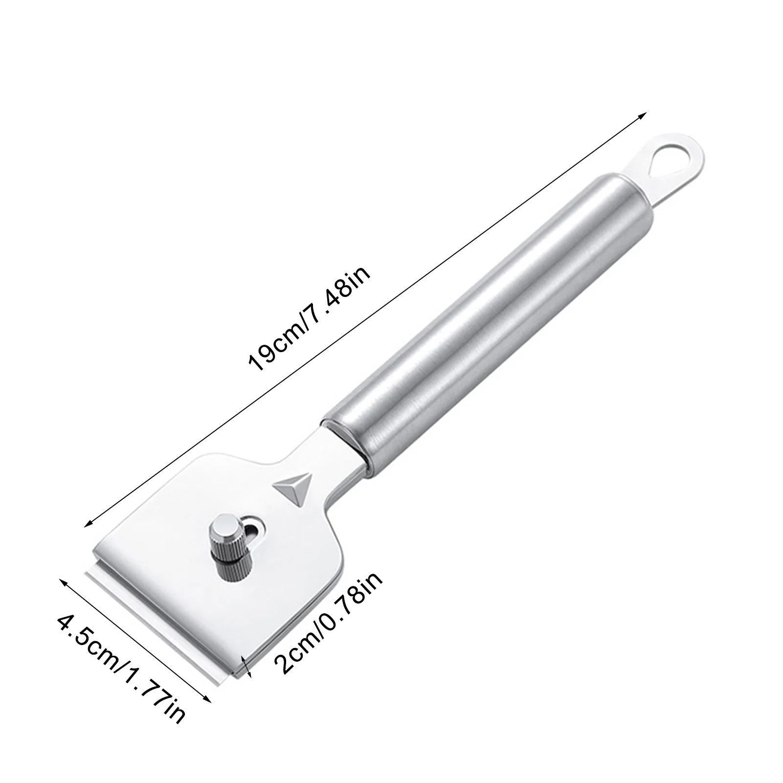 4. Широкое применение: скребок для тщательной очистки посуды, индукционных пластин, стеклянных керамических кухонных стоек, стекла, зеркал и окон. Легко удаляет пищевые отходы, наклейки, наклейки, клей, воск для свечей, этикетки, оконную пленку, налет, извести, грязь, краску и многое другое