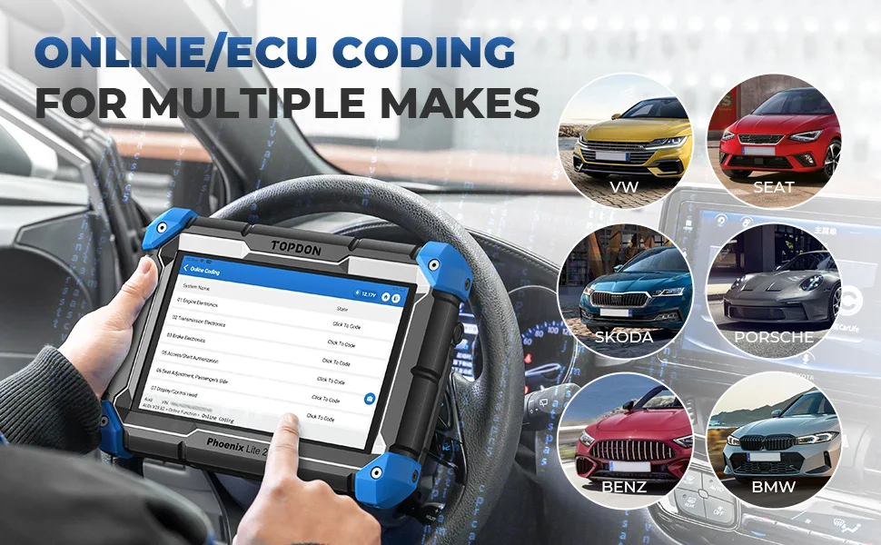 Online/ECU Coding offers access to matching and hidden functions, supported for VW, SEAT, SKODA, PORSCHE, BENZ, BMW, and more. This special scan tool can help users match and code the newly replaced ECUs and makes full use of the hidden functions like auto-folding mirrors, closing the windows with the key fob, after locking the car door, and the fuel filling amount display.diagnostic tools obd2 scanner diagnostic auto