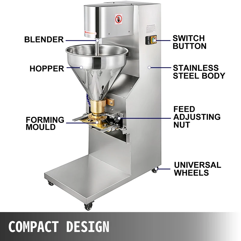 Электрический производитель мячей изготовлен с корпусом из нержавеющей стали, все части, которые коснуты едой, изготовлены из пищевой нержавеющей стали. Прочная и легкая чистка.