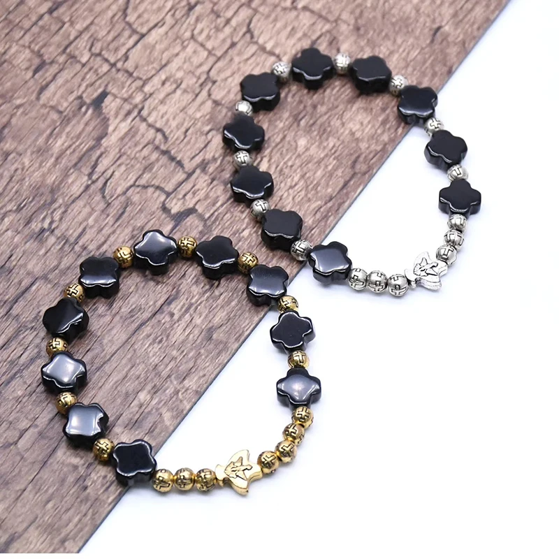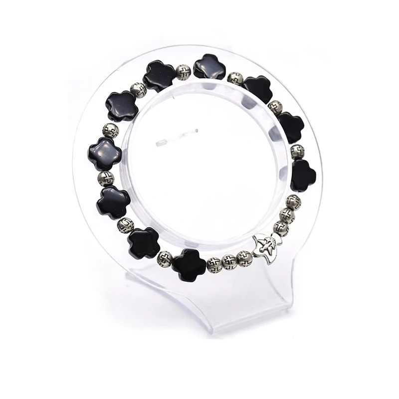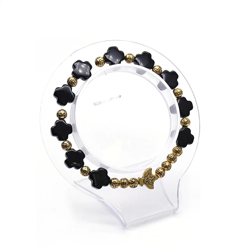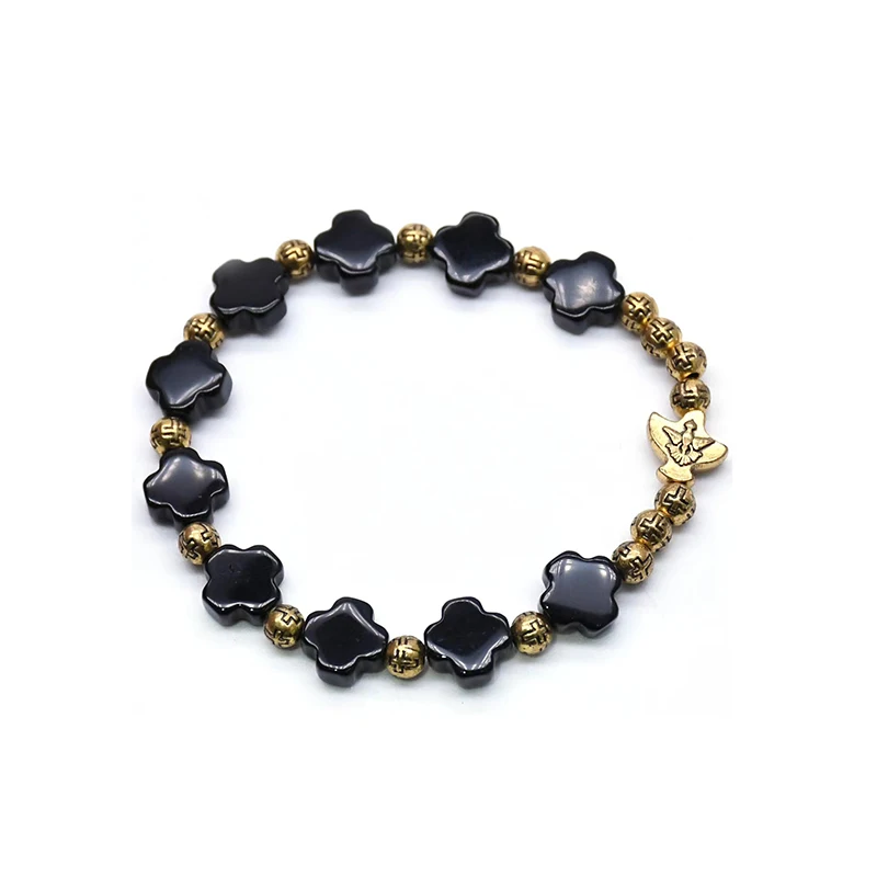 Christian Jesus Cross Charm Bracelet Metal Natural Alack Agate Bracelet Catholic Charm Brace Lace Chuch Souvenir