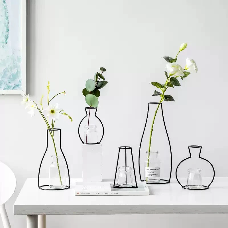 Black Iron Line Vase Flower Arrangement Crafts Plant Pot Rose Tulip Metal Holder Nordic Style Home Garden Wedding DIY Decoration