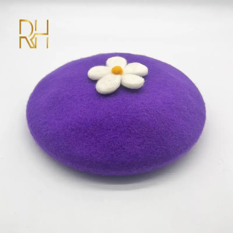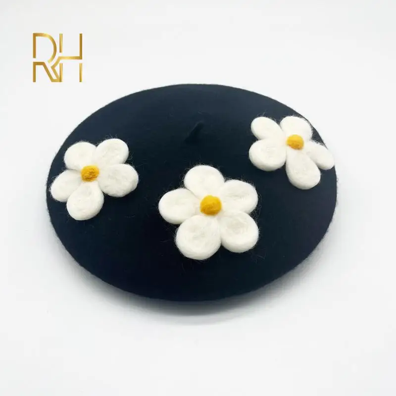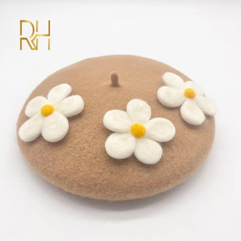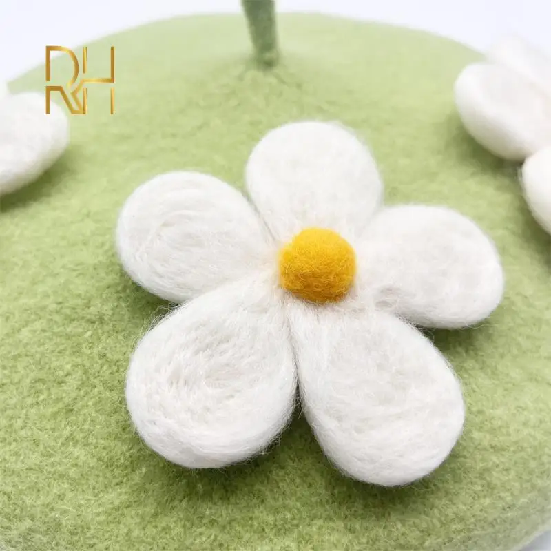 RH женский милый свежий ромашка цветы ручной работы шерсть войлочные береты подарок высокое качество красочная милая женская шапка бини оптовая продажа