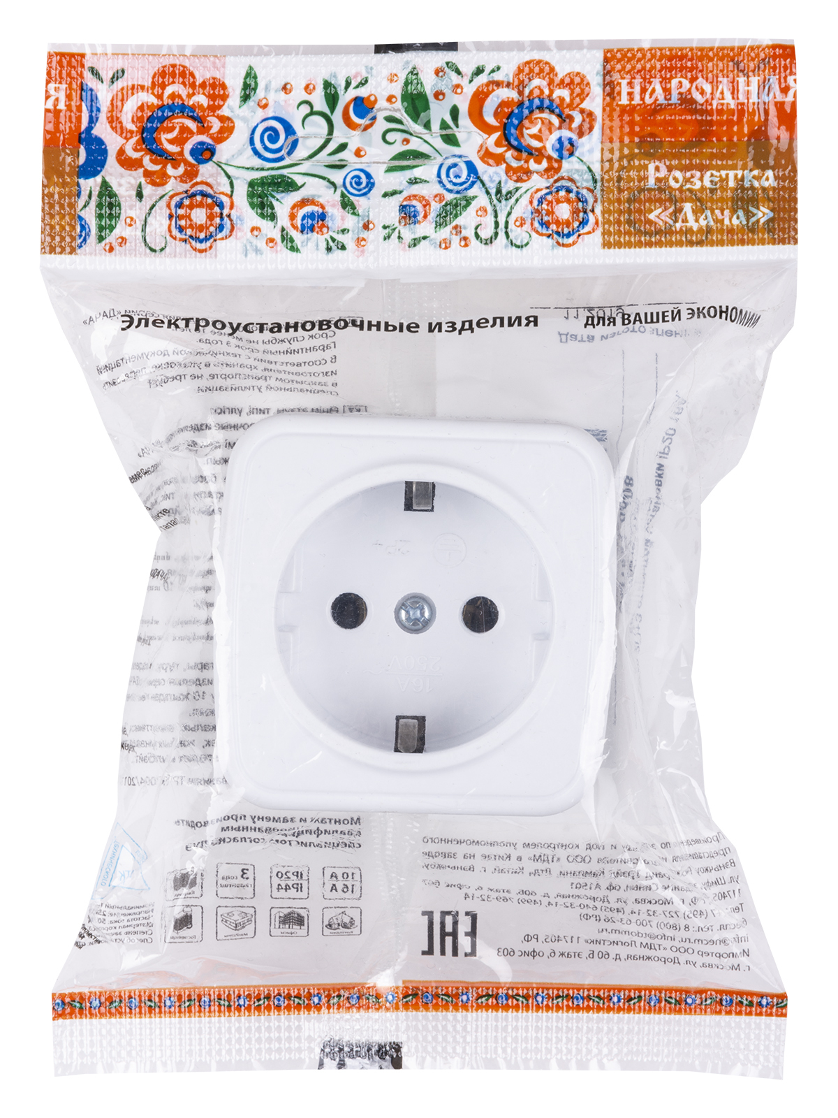 Розетка 2П+З открытой установки IP20 16А, белая "Дача" Народная