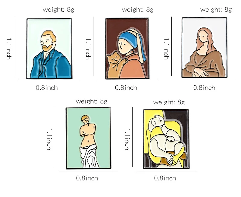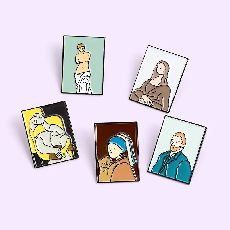 Cheap Famous Oil Painting Enamel Pins Picasso Van Gogh Mona Lisa Venus Art Artist Custom Brooches Badge Brooches Lapel Pin