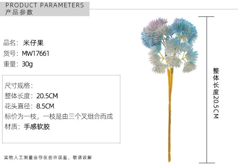 Size: overall length 20.5cm, flower head diameter 8.5cm (one branch consists of three branches)