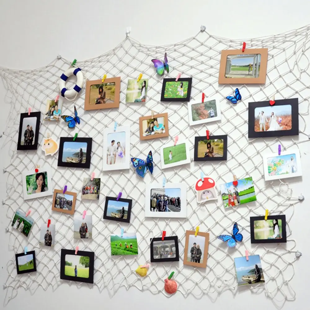 100% новый и высококачественный, прочный. Дизайн «сделай сам», вы можете украсить свою комнату, как хотите. Разместите картины, пейзажи, принты, фотографии и другие драгоценные изображения. Подходит для украшения свадьбы, вечерние, сцены, стола, дома, фотографии и т. д. Искусно отображает ваши фотографии, поздравительные открытки, шляпы, ювелирные изделия, сувениры и многое другое. Посылка включает: 1 * рыболовная сеть (другие реквизиты не включены) 5 * ногти